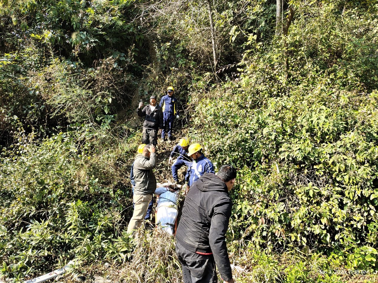 एसडीआरएफ द्वारा पिथौरागढ़ में खाई में गिरे वाहन से शवों का रेस्क्यू