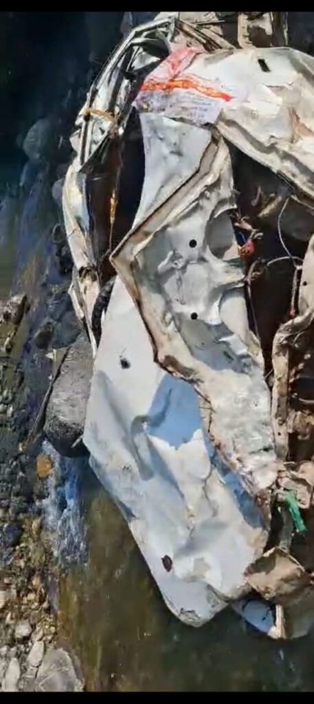 गहरी खाई में गिरी कार, दो की मौत, एक घायल