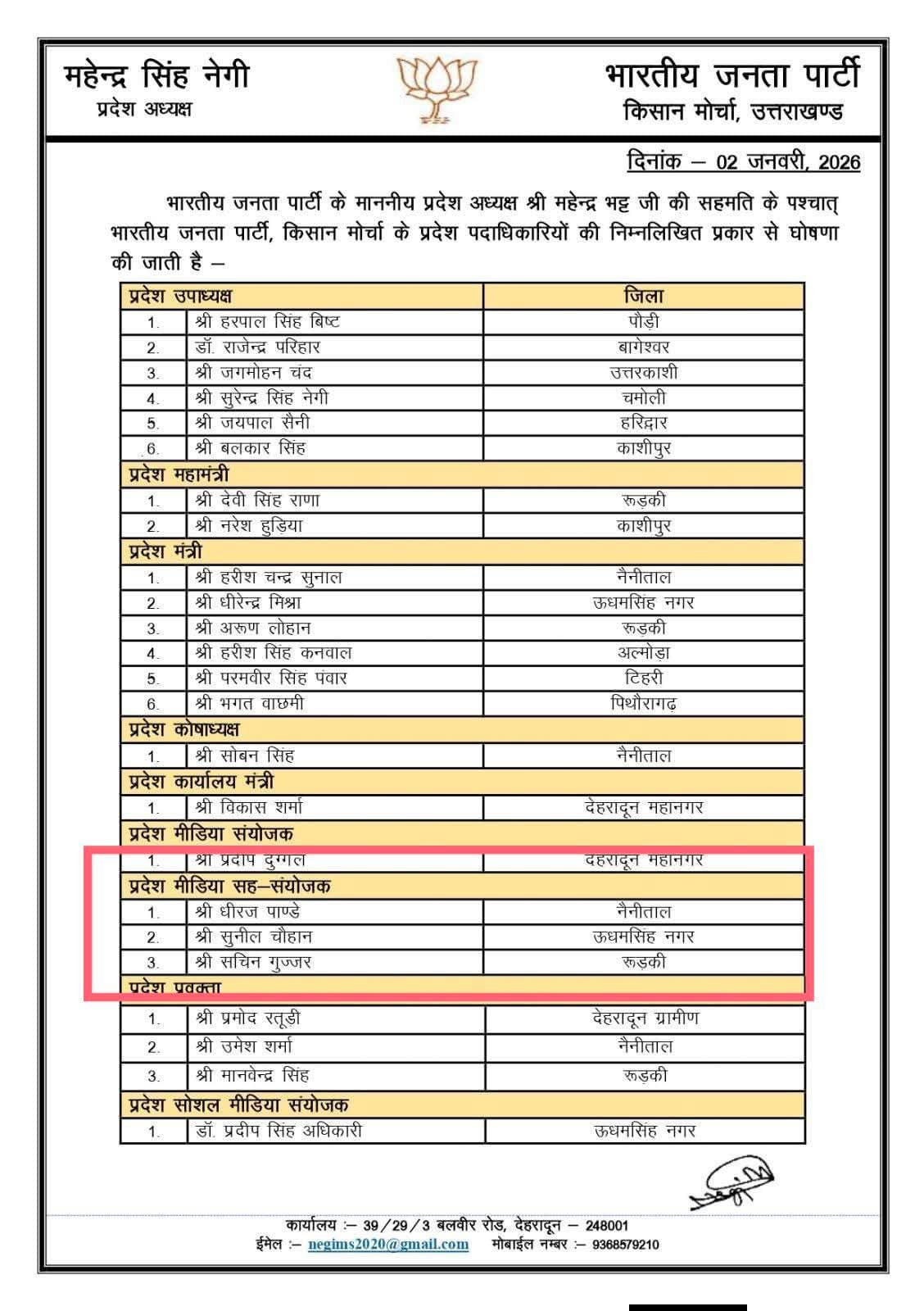 युवा राजनीति के बाद अब उन्होंने किसान मोर्चा के माध्यम से किसानों की समस्याओं को संगठन और सरकार तक पहुंचाने का संकल्प लिया है।प्रदेश मीडिया सह-संयोजक बनाए जाने पर पार्टी कार्यकर्ताओं और समर्थकों ने उन्हें शुभकामनाएं दी हैं।