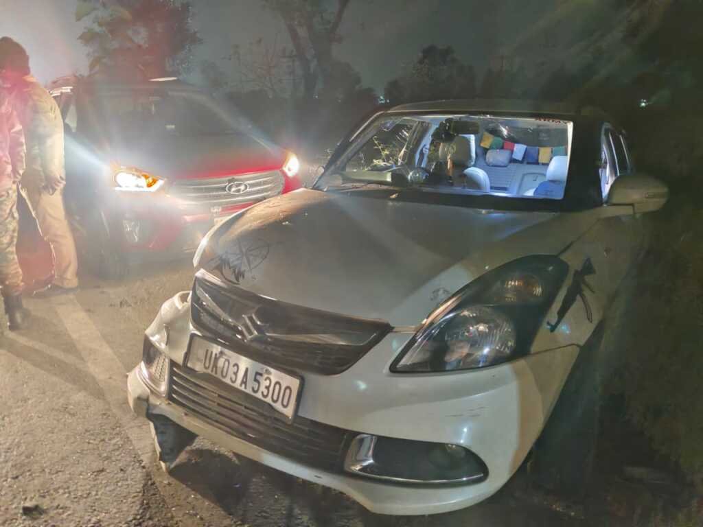 ओवरटेक के चक्कर में लालकुआं बाईपास पर दो कारों की भिड़ंत, चार लोग मामूली घायल, एक घंटे तक लगा जाम